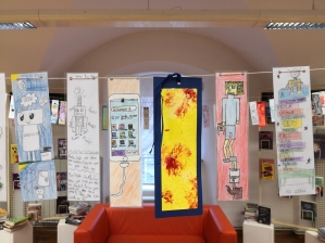Te dni prostore idrijske knjižnice bogati zanimiva razstava, na kateri so postavljene na ogled ročno narisane, pisane knjižne kazalke, ki so jih izdelali otroci iz latvijske šole v mestu Augsligatne, portugalske šole v Pedrosu ter turške šole v Istanbulu. Narisali so motive na témo “Onkraj knjižnih polic: umetna inteligenca, knjižnice in prihodnost zgodb”, izdelali pa so jih za učenke in učence OŠ Idrija. Preden jih bodo v roke dobili idrijski vrstniki, so jih na ogled postavili v idrijski knjižnici.