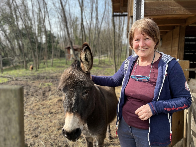 Naslovna fotografija: Na Vogerskem ji družbo delata tudi osliček in nekaj koz