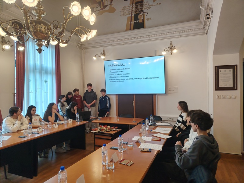 V prvem delu srečanja so v rubriki Kje pa vas čevelj žuli? idrijskemu županu Tomažu Venclju, ki se je udeležil zasedanja, učenci idrijske osnovne šole izrazili zahvalo za obnovo in dobro opremljenost šole ter opozorili na nedelovanje nekaterih ključavnic v šolskih sanitarijah in pregrevanje določenih učilnic v toplejših mesecih. Kljub zadovoljstvu nad prenovljeno Modro dvorano so izpostavili še dotrajane sanitarije, tribune in garderobe v objektu, manjkajoči znak Merkurja na dvoranskem parketu in zunanje šolsko igrišče brez golov. Želijo si tekaško stezo na stadionu za lažjo izvedbo športnega kartona.