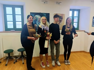 Po kulturnem programu, ki so ga prispevali njuni vrstnik in vrstnice, sta zbranim na kratko predstavila razstavljena dela. Oba rada rišeta portrete in upodabljata prizore iz narave, sicer pa tematsko Lija veliko slika tudi fantazijske prizore, medtem ko pri Staševih delih prevladuje realizem.