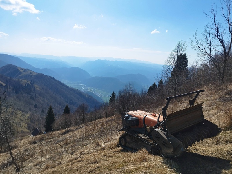 Na zahtevnih terenih v boj proti zaraščanju vstopa tudi tehnologija. Primož Černilogar predstavi uporabo daljinsko vodenih mulčerjev kot prvi korak obnove.