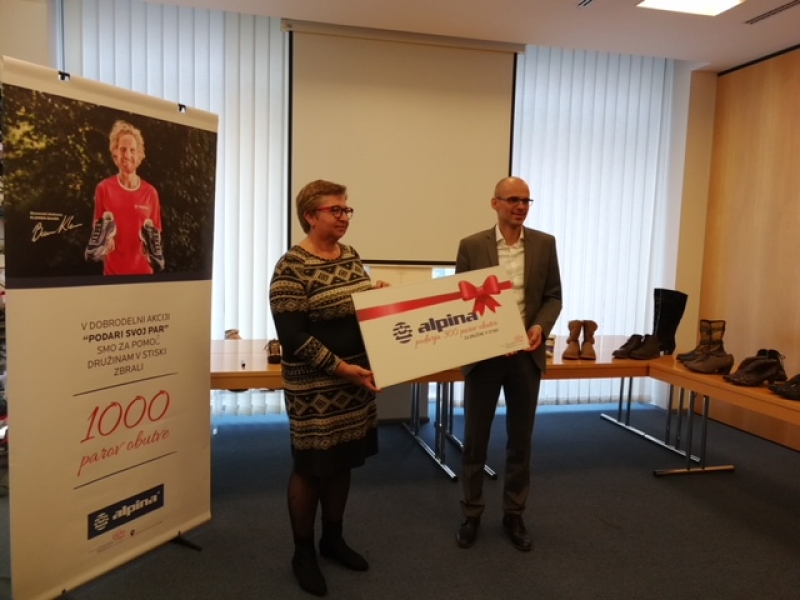 »S čevlji, ki jih ne potrebujem, tebe obujem,« je ideja že druge dobrodelne akcije »Podari svoj par«, ki jo je žirovska Alpina organizirala v sodelovanju z Zvezo prijateljev mladine Slovenije z namenom, da zagotovi toplo obutev za slovenske družine v socialni stiski. Včeraj so na sedežu podjetja v Žireh Zvezi prijateljev mladine Slovenije predali tisoč parov tople obutve, tristo parov je Alpina podarila iz svojega prodajnega programa. Aleš Poljanšek, komercialni direktor: