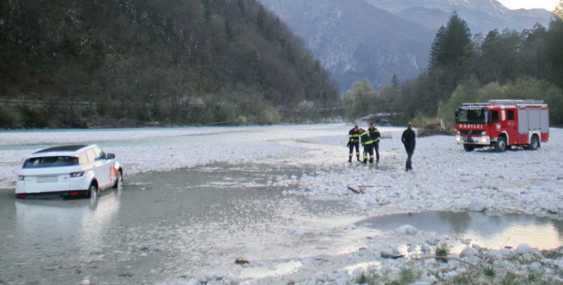 Ker hrvaški voznik ni mogel več speljati iz struge reke Soče, so policisti obvestili gasilce PGD Bovec, ki so poskrbeli za odstranitev terenskega vozila iz reke.