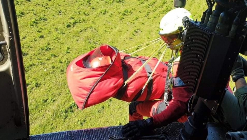 so jo prevzeli člani dežurne ekipe GRS z Brnika in jo nato z vojaškim helikopterjem odpeljali na nadaljnji pregled v ljubljanski klinični center.