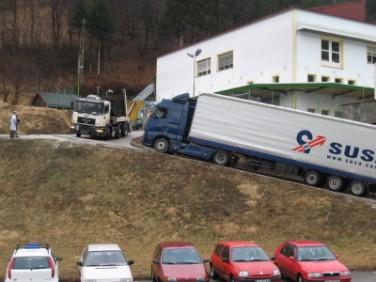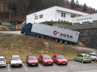 Ta tovornjakar se je vsekakor v zadnjih metrih namučil nekajkrat toliko kot od Turčije do Cerknega. Iztok Mlakar bi rekel: To je zato, ker ni z Avtoprometa Gorica...