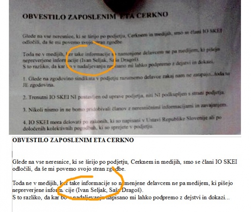 Gre za dopis, ki je razobešen po oglasnih deskah tovarne Eta. Če se komu ljubi, naj prebira...