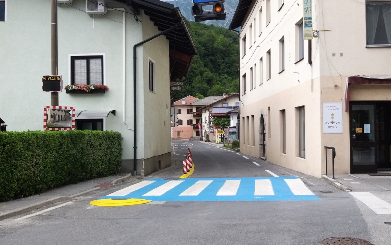 Na Volaričevi cesti v Kobaridu so pred dnevi uredili varnejši prehod za pešce. Novost bo dobrodošla predvsem za pešce, katerim je po novem namenjen poseben pas ob vozišču, ki omogoča precej bolj varen prehod v najožjem delu ulice.
