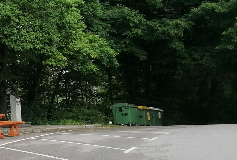 Na sliki: Smetnjaki ob spomeniku Viktorju Volčjaku ne dajejo najlepšega vtisa.
