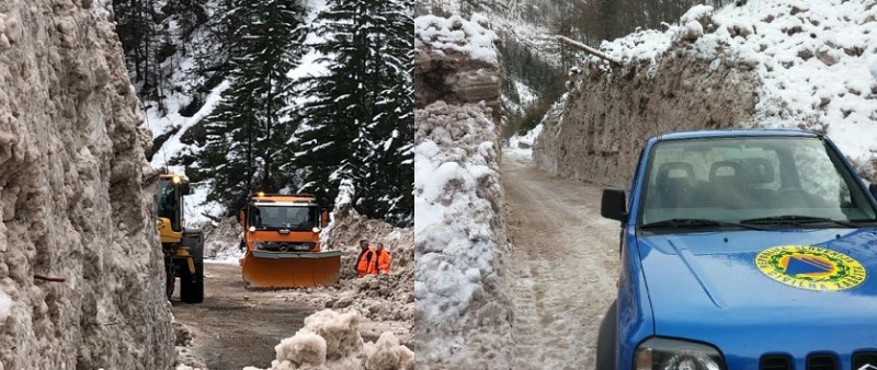 Na Bovškem so danes ves dan nadaljevali s čiščenjem ceste od Bovca proti Trenti, potem ko so jo v petek in soboto na več odsekih zasuli snežni plazovi.