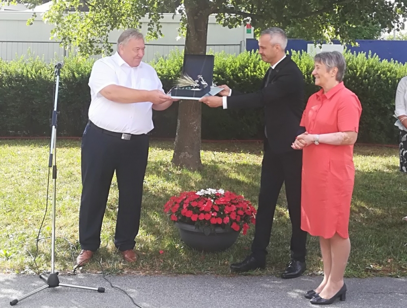 Dogodek sta s polaganjem temeljnega kamna zapečatila minister in župan, navzoči pa so se poveselili ob zvokih harmonike, na katero je zaigral eden od varovancev.
