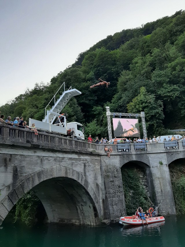 Turistično društvo Most na Soči je tako po enoletnem premoru skokov z mostu organiziralo odličen športni dogodek, k čemur sta prispevala tudi sončno vreme in Soča z 18-imi stopinjami. Predsednik društva Aljoša Križnič.