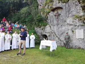 Včeraj dopoldne se je pred kaverno s kapelico pod Mrzlim vrhom odvila jubilejna 20. spominska slovesnost z mašo v spomin na vse padle v prvi svetovni vojni. Dogodek že vse od leta 2001 organizira društvo Peski iz Tolmina, ki je pred dvema desetletjema tudi poskrbelo za sanacijo vhoda v kaverno z oltarjem in okolico.