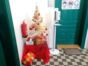 Čeprav so obiski občanov zaradi opravkov na uradih idrijske občine tudi letos podvrženi ukrepom, povezanim s preprečevanjem okužbe z novim koronavirusom, so sodelavci občinske uprave tudi v teh decembrskih praznikih pred vhodom v županski urad postavili smrečico, ki ima prav poseben namen.