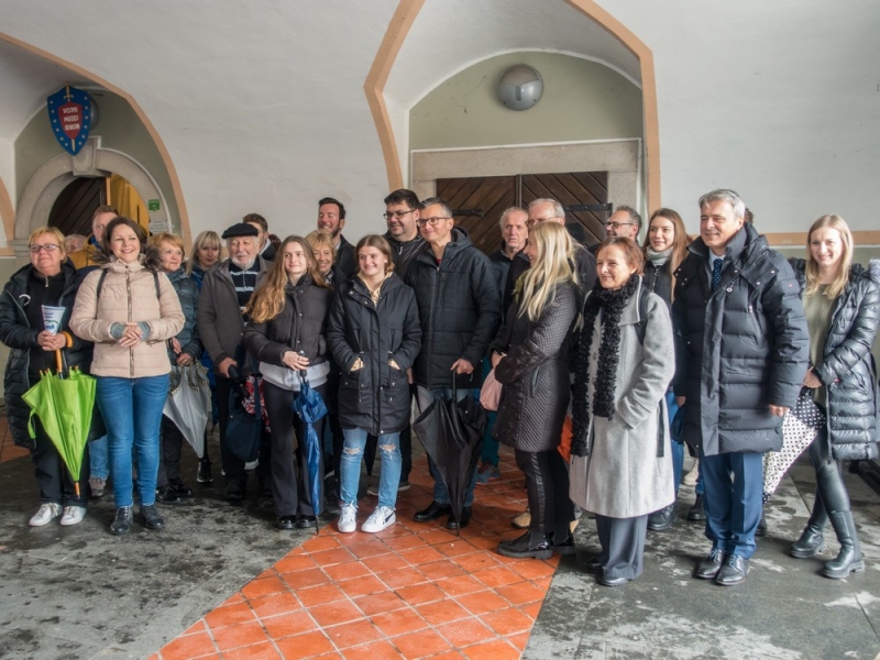 Marjana Šarca je pod idrijskim magazinom sprejel tudi župan občine Idrija Tomaž Vencelj, Slavko Moravec pa mu je ob tej priložnosti razkazal svoj znameniti vojni muzej.