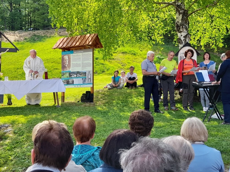 Preteklo nedeljo je KTT društvo Baška dediščina po dveh letih spet povabilo na Robarjev grič na Petrovem Brdu k Volfovemu srečanju. Na to naravno razgledišče, kjer je društvo pred petnajstimi leti v sodelovanju z župnijo Podbrdo postavilo sveto znamenje duhovniku in rodoljubu Janezu Volfu, je v sončnem popoldnevu prišlo lepo število domačinov in gostov iz Sorice in Železnikov. Spomnimo, da stoji nad njegovo rojstno domačijo na mestu, kjer si je Janez postavil brunarico z oltarčkom, da bi v njej preživljal stara leta. Od takrat so vsakoletno srečanje s sveto mašo preprečile le kovidne razmere. Tudi tokrat jo je ob petju cerkvenega pevskega zbora iz Podbrda daroval domači župnik Danilo Kobal.
