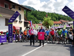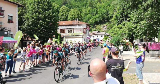Kolesarska dirka po Italiji je včeraj v okviru 19. etape okoli 15. ure še drugo leto zapovrstjo za nekaj deset kilometrov zavila na slovensko stran državne meje. Občine, ki so gostile Giro, so pripravile bogat spremljevalni program ob prihodu rožnate pentlje v regijo. Osrednje družabno dogajanje je bilo v Kobaridu, največ gledalcev ob progi pa se je po pričakovanjih zbralo ob vzponu na Kolovrat.