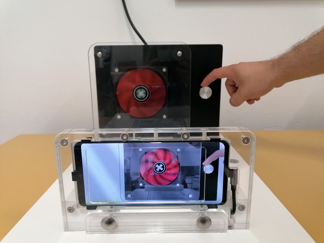 Izraelski komunikator znanosti pri izvajanju eksperimenta