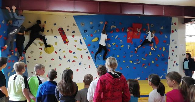 Na OŠ Franceta Bevka Tolmin je bilo danes dopoldne slovesno. Cela šola se je zbrala v telovadnici in prisluhnila posebni prireditvi, s katero so obeležili slavnostno odprtje nove plezalne stene, ki je po večletnem trudu pričakala učence in učitelje v začetku tega šolskega leta.