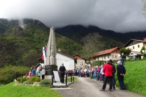 Društvo ga je zaključilo pri spomeniku žrtvam NOB na Koritnici, ki se v obliki treh pušk dviga proti nebu že 50 let. Z idejno zasnovo se je še posebej potrudil domačin Ljubo Brovč. Ta mogočna stvaritev z načinom postavitve prinaša čudovito sporočilo: konec je sovražnosti, prihajata svoboda in mir. Ob spomeniku se je pohodnikom priključilo še lepo število domačinov, slovesnosti se je udeležilo tudi kar osem praporščakov s prapori. O časih, ki si jih ne želimo nikoli več, je govoril slavnostni govornik, predsednik Združenja borcev za vrednote NOB Bovec, Kobarid Tolmin Rok Uršič. Besede je podkrepil Cveto Zgaga z recitacijo Kajuhove Slovenske pesmi. Domačina sta k spomeniku položila venec.