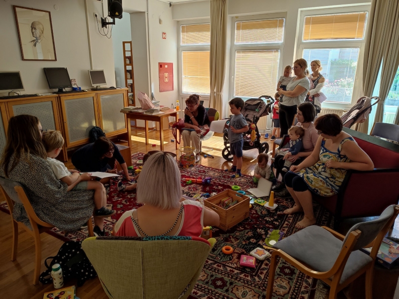Srečanja so namenjena mladim staršem na starševskem dopustu, lahko pa tudi starim staršem, stricem, tetam, varuškam in vsem, ki bi radi poglobili znanje o zgodnjem razvoju otroka in o njegovi razvijajoči se pismenosti. Udeležite se jih skupaj z otrokom, ki se v času srečanja lahko igra, raziskuje, gleda knjige, spi ali se hrani.