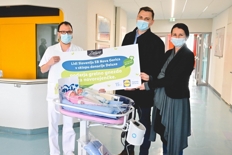 Lidl Slovenija je danes v okviru tradicionalne donacije Deluxe novogoriški in izolski porodnišnici predal grelno gnezdece za prezgodaj rojene otroke. Ob 15. obletnici podjetja na slovenskem trgu so namreč del sredstev od prodaje prazničnih izdelkov Deluxe namenili nakupu 15 grelnih gnezdec, ki jih v teh tednih podarjajo vsem slovenskim porodnišnicam. Vseslovenski donaciji se je pridružilo tudi društvo Slojenčki z donacijo posteljic za novorojenčke, v katera se umestijo grelna gnezdeca. Predajo donacije je v Novi Gorici in Izoli pospremila podoknica za novopečene mamice, ki jo je izvedla vokalna skupina Muzikalci.