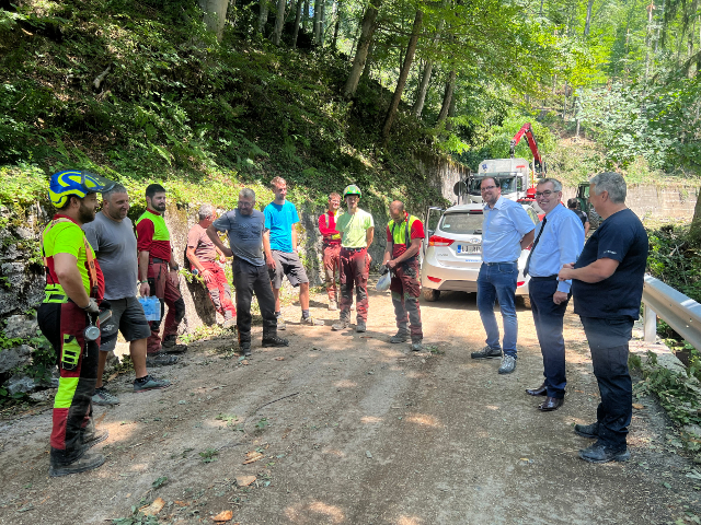 Včeraj se je v Cerknem mudil direktor Direkcije RS za infrastrukturo Bojan Tičar. V spremstvu župana Gašperja Uršiča in poveljnika Civilne zaščite Občine Cerkno Stanka Močnika si je ogledal stanje na najbolj prizadetem odseku državne ceste Cerkno–Novaki; najprej škodo, ki jo je neurje z deročo vodo prejšnji teden povzročilo na cestišču od Cerknega proti Logu, nato pa v Dolenjih Novakih še škodo, ki jo je na brežinah ob cesti in na njej v sredo zvečer povzročil vetrolom. Ocenil je, da bo sanacija zahtevna, kompleksna in dolgotrajna, saj bi bilo najbolj smiselno pripraviti projekt za hkratno sanacijo ceste in vodotoka, kar pomeni sodelovanje dveh direkcij – tako za vode kot za infrastrukturo – ter občine z vsemi strokovnimi službami. Želijo si: