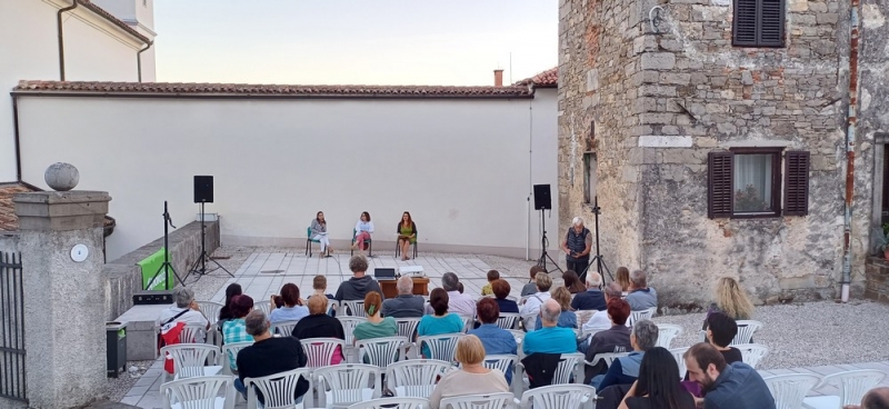Obiskovalci prvega dogodka, filmskega večera, so bili obdani ne le s srednjeveškimi zidovi, ki dajejo vasici njeno značilno vzdušje, ampak jih je zgodba o gradiščih, pripovedovana skozi oči deklice Heme, popeljala še bolj nazaj, vse do železne in bronaste dobe. Na to pot sta jih pospremili režiserka igrano-dokumentarnega filma Francesca Mucignato in doc. dr. Manca Vinazza z oddelka za arheologijo Filozofske fakultete v Ljubljani. V uvodnem pogovoru z Nino Klaut sta namreč predstavili tako ozadje nastanka filma kot tudi raziskovanje in pomen teh zgodovinskih ostalin na Primorskem.