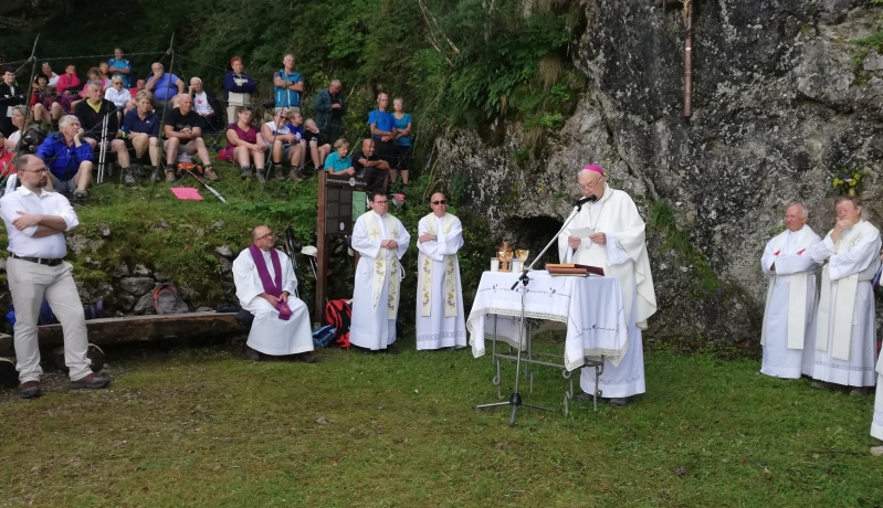 Pri kaverni z oltarjem pod Mrzlim vrhom je včeraj dopoldne potekala že 22. slovesnost s sveto mašo, ki jo društvo Peski 1915-1917 že od leta 2001, ko je uredilo kaverno z oltarjem in njeno okolico, pripravlja v spomin na vse žrtve velike vojne.