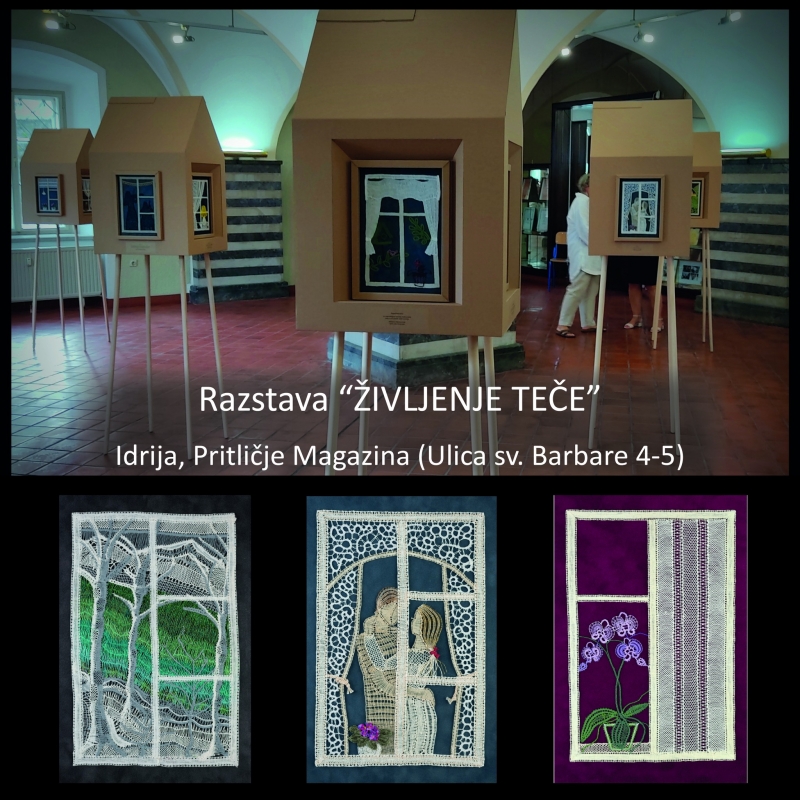 V pritličju Magazina je že od petka na ogled izvirna postavitev klekljanih izdelkov »Življenje teče« s podnaslovom „Radi Firbcamo“, ki so jo pripravile klekljarice skupin Idrija 2 in Dole. V središču je okno, ki obiskovalca postavi na eno ali drugo stran zidu, kakor si pač zamisliš svoj položaj in željo po opazovanju, po idrijsko - firbcanju. Dva ducata klekljanih izdelkov na tej ali oni strani okna zaokrožajo tudi mozaiki Silvestra Bajca, ki je motiv čipke vključil v svoja okna. Razstava, ki jo je oblikoval in postavil Jože Carli, bo na ogled vse do 10. septembra letos. Nekaj več besed o razstavi pa sta spregovorili Sonja Mlakar in Marija Novak Boškovič.