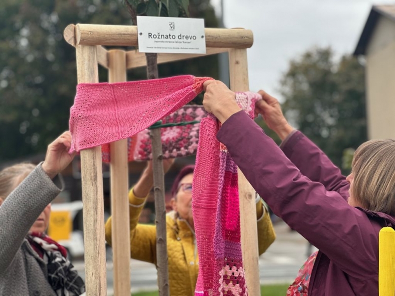 V malem parku v Logatcu je župan Berto Menard skupaj s predstavnicami Univerze za tretje življenjsko obdobje - sekcija kvačkanje ter zaposlenimi v Centru za krepitev zdravja Zdravstveni dom Logatec zasadil ROŽNATO DREVO, ki bo vsak dan Logatčane in Logatčanke opozarjalo na pomen skrbi za svoje zdravje.