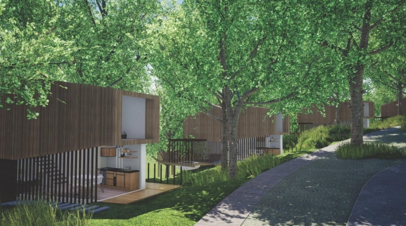 Načrtovane hišice bodo bistveno manjše, površine do 60 m2, in drugače oblikovane, manjši bo strešni naklon, vendar bodo zaradi načrtovanega drevoreda in lege zemljišča tudi precej skrite pred pogledi.