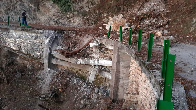 Skalni podor je včeraj odnesel velik del ceste proti Čadrgu, zato cesta do nadaljnjega ostaja zaprta oziroma neprevozna. Civilna zaščita si je skupaj s pristojnimi stanje ogledala že sinoči, vzpostavili so tudi stik z domačini, ki so ostali brez edine povezave z dolino.