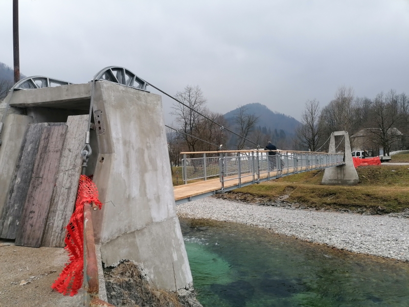 Te dni se zaključujejo glavna sanacijska dela na visečem mostu Pr’ debeli skali v Idriji, ki pešce vodi z glavne ceste oziroma Gregorčičeve ulice čez Idrijco do idrijske Mejce. Most je bil zaradi dotrajanosti in s tem nevarnosti za pešce zaprt že več kot štiri leta, saj je nosilne vrvi uničila rja. Te so bile sicer zaščitene s plastičnimi totra cevmi, pod katerimi pa se je nabirala vlaga in še pospeševala korozijo. Januarja letos so se začela obnovitvena dela, ki pa niso zajemala le prenove nosilnih vrvi, ampak tudi ograje, pohodne površine, statično utrditev in druge nujne posege, ki jih je izvedlo podjetje Kaskader. Most Pr’ debeli skali v Idriji bo kmalu odprt za uporabo, sicer pa občino kaj kmalu čaka še prenova visečega mostu čez Idrijco pri Renkovcu in še kje. Na območju občine je namreč na vodotokih skupno preko 20 visečih mostov. Več o prenovi visečega mostu Pr’debeli skali in načrtovanih drugih posegih na tovrstnih mostovih v občini pa župan Tomaž Vencelj v prispevku Metke Rupnik.