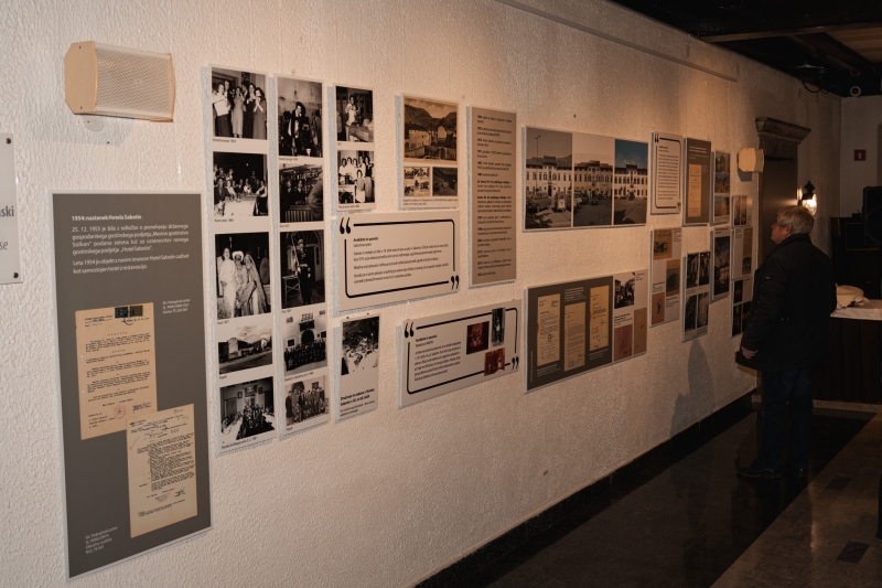 Razstava v hotelski avli, ki bo na ogled do 31. marca, je dober način, da se seznanimo z zgodovino stavbe in njenih lastnikov: