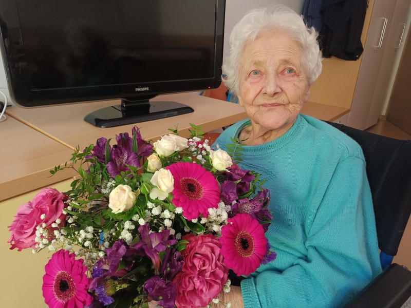 Zaposleni v domu občudujejo živahnost, iskrivost in zgovornost slavljenke. Kot so v obujali v spominih, jo je v življenju krasil optimizem, zaupanje v ljudi, v življenje nasploh, pa tudi skromnost. Ni poznala tarnanja, kljub temu da se je bilo treba znajti in prijeti za vsako delo. Sicer se pa še zelo dobro spominja, kako je po vojni šla v šolo, takrat so bili to neke vrste tečaji in bila potem po dekretu poslana na Štajersko, v Slovenske Konjice. Za tiste čase je bilo to na drugem koncu sveta. Za vnuka je njuna stara mama najsvetlejši in neizmerno topel človek, kjer sta vedno našla lepo in tolažečo besedo. Slavljenka pa je seveda delila tudi besede modrosti, in sicer pravi, da ji gredo dnevi zelo hitro naprej, zato je rada v družbi, gre na razne prireditve in k maši. Kot pravi lahko reče, da je zadovoljna s svojim življenjem, pravzaprav pa nikdar od njega ni pričakovala kaj posebnega. Mladim je zaželela veliko poštenja, delavnosti pa da ga ne bi preveč »bandali«. Od vsega. pa pravi, je najpomembnejše zdravje. V Domu upokojencev Idrija imajo tako zdaj kar tri stanovalke, ki štejejo več kot sto let.