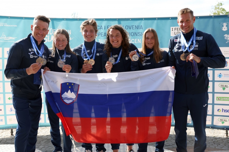 So pa nato fantastično nedeljo na evropskem prvenstvu v slalomu na divjih vodah v Tacnu tekmovalci zaokrožili še z ekipnimi uspehi. Kanuisti so v postavi Žiga Lin Hočevar, Luka Božič in Beni Savšek osvojili že tretje slovensko zlato na prvenstvu, uspeh pa je z drugim mestom dopolnila ženska ekipa v postavi Eva Alina Hočevar, Alja Kozorog in Lea Novak.