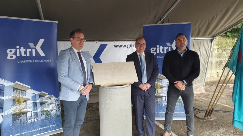 Na Streliški ulici v Novi Gorici sta včeraj direktor Stanovanjskega sklada Peter Jan in župan Mestne občine Nova Gorica Samo Turel položila temeljni kamen za gradnjo trietažnega stanovanjskega bloka, v katerem bo Sklad pridobil 11 neprofitnih stanovanj. Rok za končanje del je leto dni.