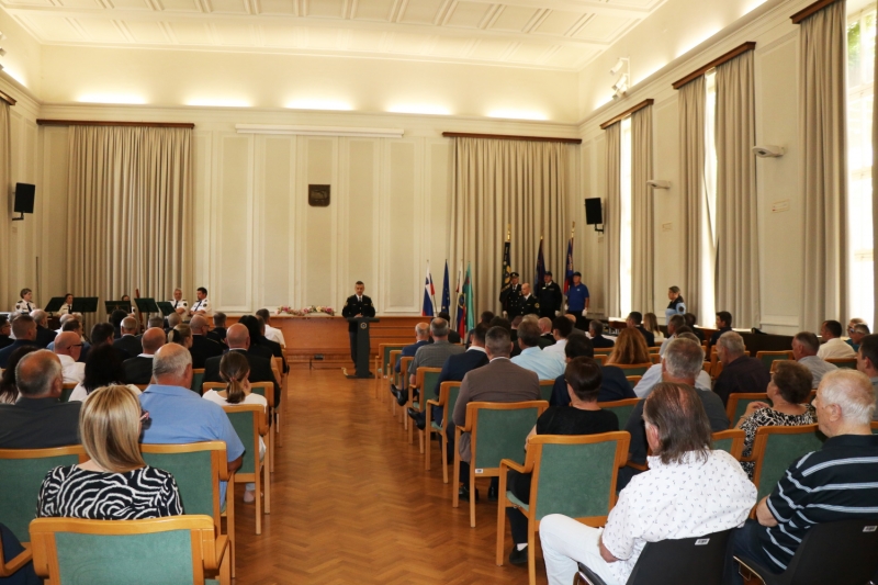 Včeraj je v dvorani mestne hišw v Novi Gorici potekala osrednja slovesnost Policijske uprave Nova Gorica ob dnevu slovenske policije - 27. junij. Slovenski policisti so si svoj praznik izbrali v spomin na prepričljivo vlogo, ki so jo odigrali v osamosvojitveni vojni leta 1991. Tudi letos so se je poleg policistov in kriminalistov ter drugih zaposlenih na Policijski upravi Nova Gorica udeležili predstavniki različnih državnih institucij, lokalnih skupnosti, veteranskih organizacij in številni drugi udeleženci, med njimi tudi predstavniki italijanskih varnostnih organov. Slavnostna govornika na letošnji osrednji proslavi sta bila Robert Feltrin, ki po pooblastilu generalnega direktorja policije začasno vodi Policijsko upravo Nova Gorica, in direktor Nacionalnega forenzičnega laboratorija mag. Boštjan Glavič,