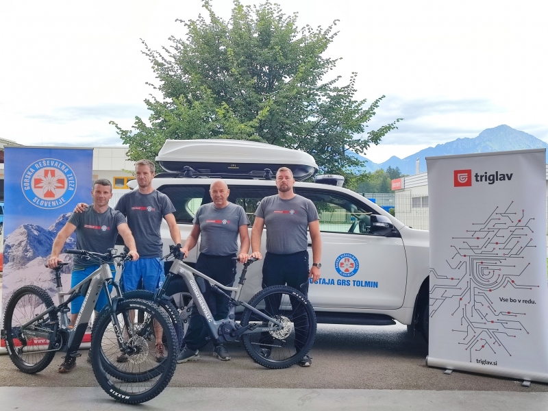 Tolminski gorski reševalci so minulo sredo v vozni park sprejeli dve električni gorski kolesi, ki ju je Gorska reševalna zveza Slovenije kupila s pomočjo donatorja, Zavarovalnice Triglav in ob podpori projekta Očistimo naše gore.
