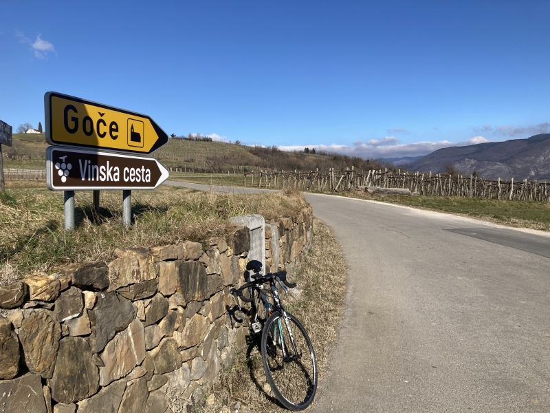 Nadaljujemo naš kolesarski izlet – iz vipavske vasi Manče smo se podali naprej po cesti proti Štanjelu. V vasi Manče se začne krajši vzpon, ki kolesarja nagradi s čudovitimi razgledi na vinograde, dokler ne prikolesarimo do odcepa za vas Goče. Tam lahko skrenemo s poti in se povzpnemo v to slikovito vas – in prav to smo tudi storili.