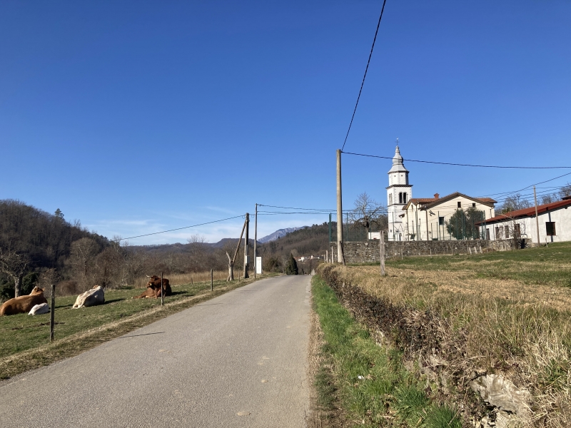 Kmalu za vasjo Trebižani se cesta odcepi desno proti Braniku, a še preden smo prispeli tja, smo se ustavili v vasi Kodreti.