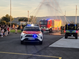 Za obiskovalce so gasilci pripravili zanimiv spremljevalni program. Najmlajši pionirčki so tekmovali v gasilskih veščinah, prikazana je bila tehnika plezanja in spuščanja po vrvi, gasilci PGD Podnanos pa so poskrbeli za atraktivno postavitev lestve. Poseben trenutek je bil priložnostni vodni slavolok za nova vozila, ki so jih letos prejeli ajdovski gasilci. Slavolok sta izvedli PGD Vipava in PGD Selo, vsaka s svojo starodobno gasilsko črpalko.