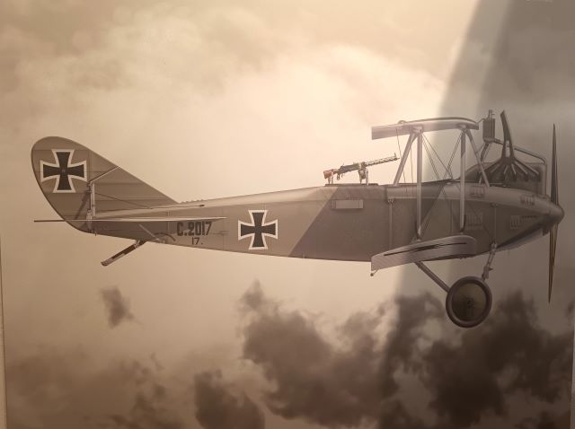 Arheološka izkopavanja so potrdila, da gre za nemško dvosedežno izvidniško letalo tipa DFW C. V, ki je bilo sestreljeno oktobra 1917.