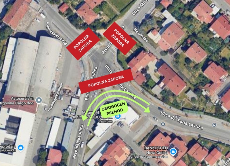 V Novi Gorici je od danes v veljavi delna zapora križišča med Prvomajsko ulico in Ulico dr. Karla Lavriča, ki bo v veljavi predvidoma do konca letošnjega oktobra.