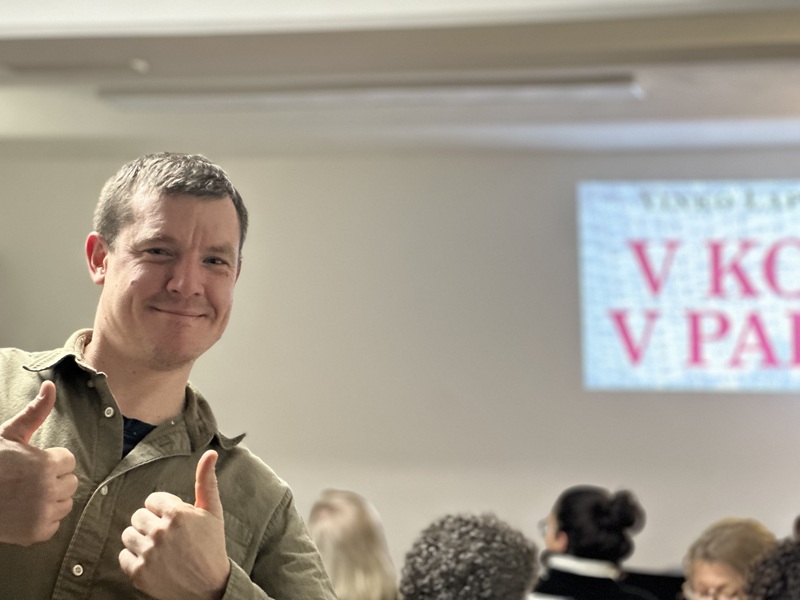 Na predstavitvi knjige "V koši v Pariz"