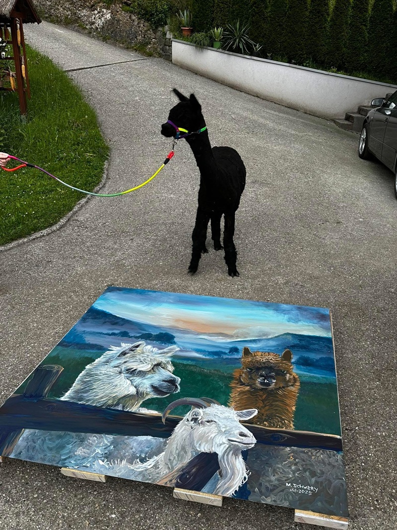 Ustvarja tudi različne stenske poslikave ter slike na platno