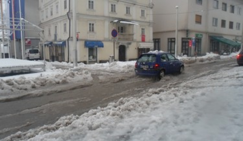 očistili sneg. Ta se je po končanem sneženju spremenil v plundro,