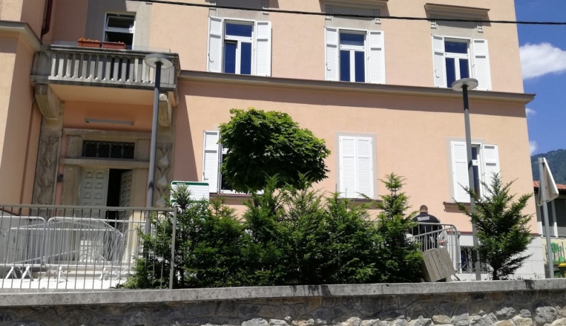 Na sliki: nenavadno ostri ukrepi zavarovanja okolice skupščine večnamenskega objekta v Cerknem.