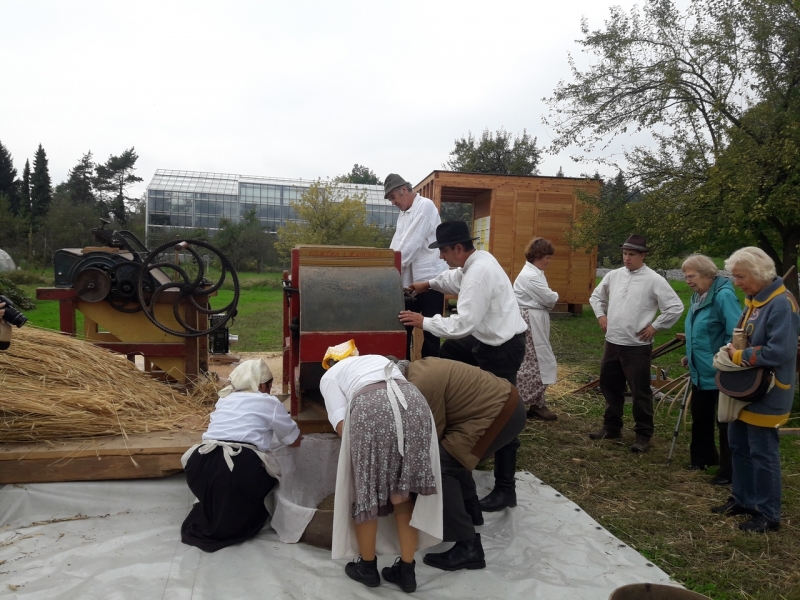 Obisk so mu Novačani včeraj vrnili in na novi lokaciji Botaničnega vrta, kjer stoji tudi čebelnjak, prikazali obdelavo žita na ročni in strojni pogon. Pod vodstvom Silva Čemažarja in s pomočjo avtentičnih strojev, ki so jih Novačani v ta namen pripeljali v Ljubljano, so najprej omlatili žito, ga očistili, domačin Janko Peternelj pa je izdelal tudi pravi škopnik. Obiskovalce, ki so z zanimanjem in pohvalami prisostvovali prikazu, so člani turističnega društva pogostili s kulinaričnimi dobrotami. Tako so na lep način spoznali Novake in Cerkljansko, ki ponuja obilo etnoloških in turističnih zanimivosti.