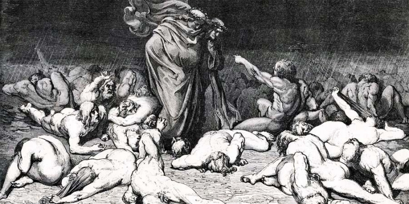 Neskončna visokost opazuje neštete kotle z vrelo smolo, v katere zo za vse večne čase pahnjeni pogubljeni zemljani. Iz kotlov se neprestano skušajo dvigniti obsojenci, a jih peklenski stražarji znova in znova potlačijo v večni ogenj. Veliko dela imajo, saj si mučeniki pomagajo med seboj, da bi se rešili neznosne vročine.